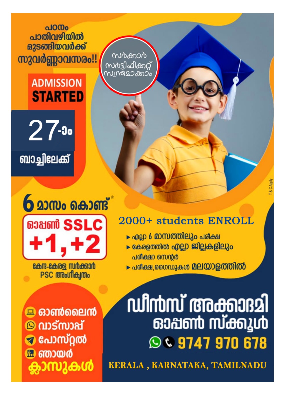 - ഏത് പ്രായക്കാർക്കും എഴുതാം ഏത് നാട്ടിലിരുന്നും ഓൺലൈനായി നിങ്ങളുടെ ഒഴിവു സമയത്ത് പഠിക്കാം.*